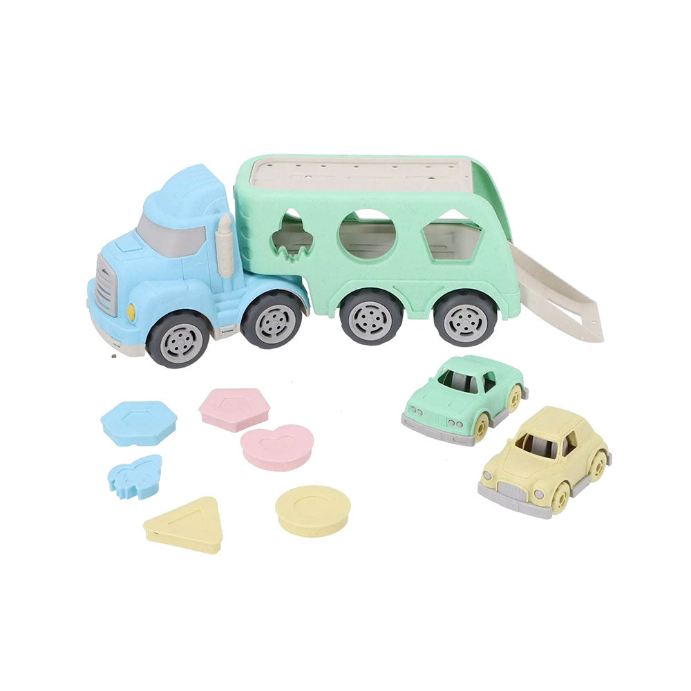 Veículo de transporte alusivo ao universo de construção civil com cores apelativas ao mundo dos brinquedos verdadeiramente ecológicos e sustentáveis. Inclui Camião e 2 carrinhos transportáveis.