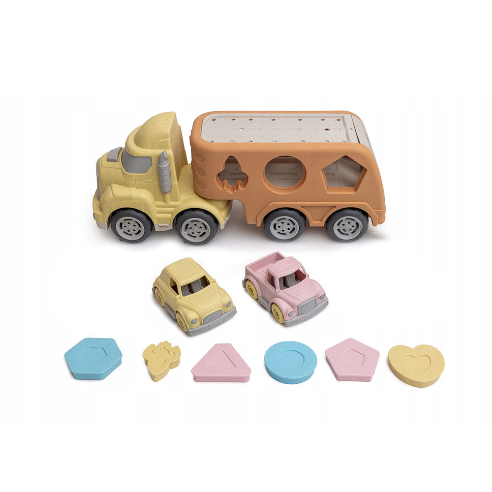 Veículo de transporte alusivo ao universo de construção civil com cores apelativas ao mundo dos brinquedos verdadeiramente ecológicos e sustentáveis. Inclui Camião e 2 carrinhos transportáveis.